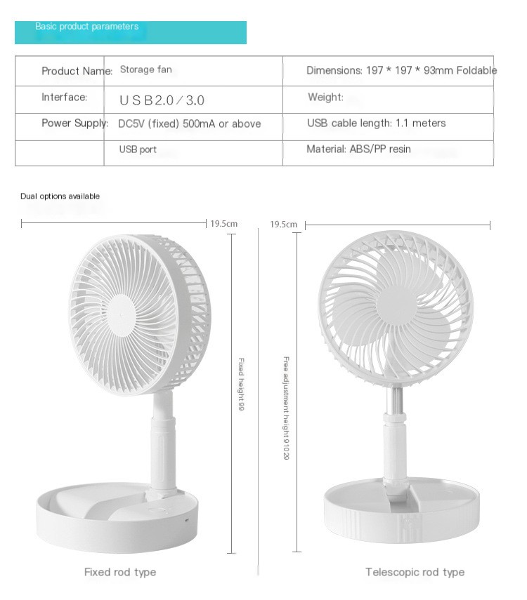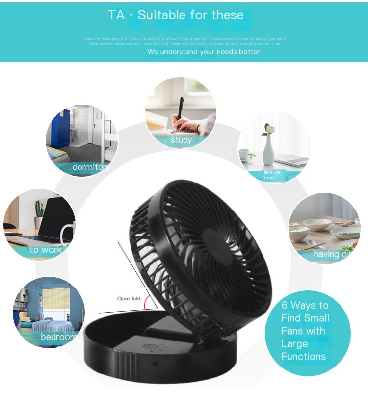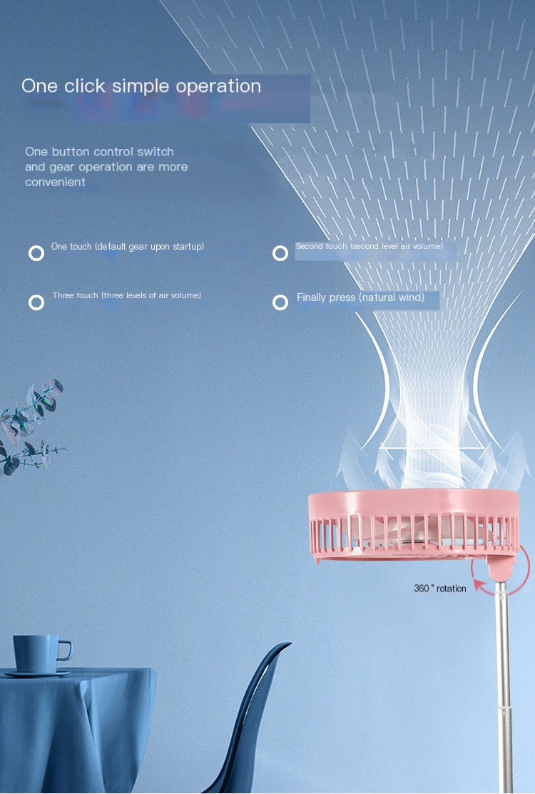 Portable Fan USB Rechargeable Folding Telescopic Stand Fan Mini Fans for Home Outdoor Camping Air Conditioner